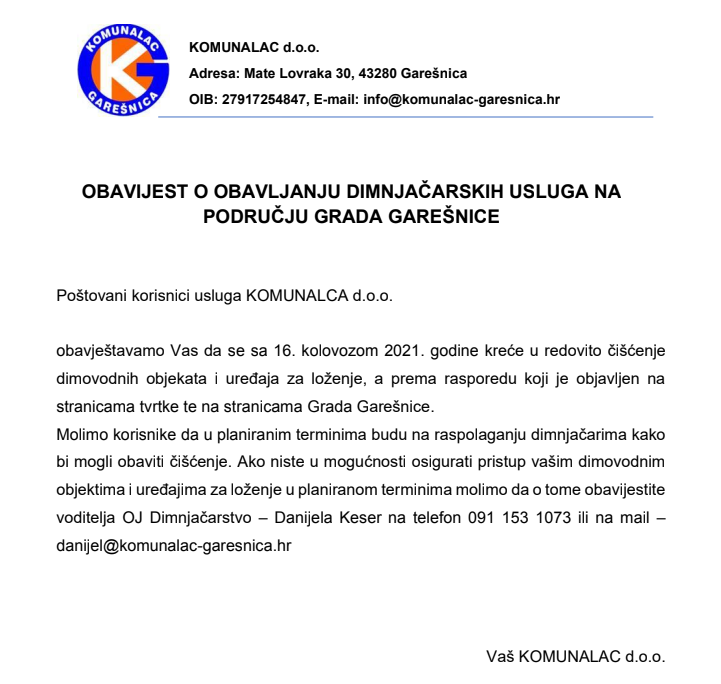 1. Plan obavljanja dimnjačarskih usluga - GAREŠNICA 2021 - 2022 - PDF